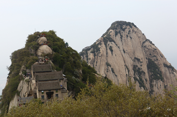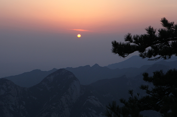 立于北峰之巔,朝南望,華山雄姿立現(xiàn)眼前,東、南、西、中峰相依相偎,拔地而起,直插云霄。眾山峰既各展風采,又渾然一體,山體巍峨,氣勢磅礴,盡顯大自然的鬼斧神工和無限造化。