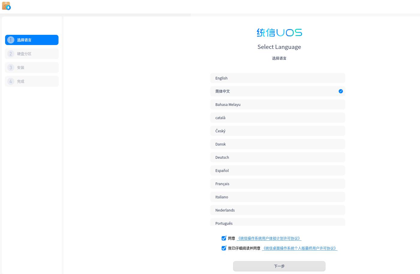 ? ? ? ? 2、語言選擇簡體中文,并同意許可協(xié)議。