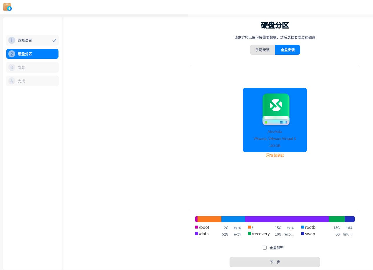? ? ? ? 3、選擇硬盤,支持手動分區(qū)和自動分區(qū)。