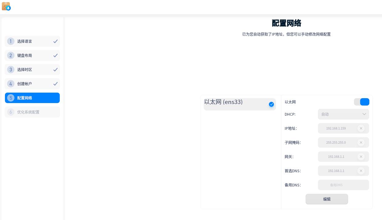 ? ? ? ? 10、配置網(wǎng)絡(luò),可自動獲取IP地址。